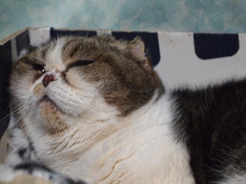 折れ耳スコ。折れ耳同士を交配したためか、6か月を過ぎた頃より四肢異常出現。不自由な体でも懸命に生きているてんちゃん。シニアステージに入っても威厳を保ってがんばっている。てんちゃんの体の事、毎日をゆるゆるっと記録していくよ~~。
