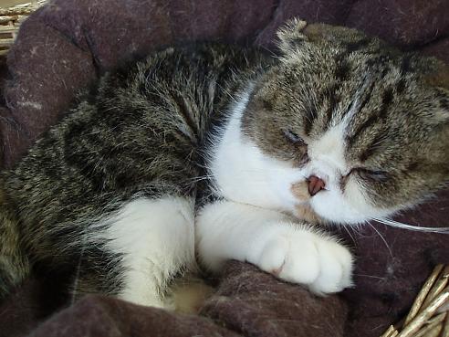 スコは突然変異のスージーという耳が折れた猫が始まり。 突然変異なので、1回の出産で20%~30%くらいしか耳折れの子は生まれないらしい。4にゃん産まれても1にゃんが耳折れで産まれるか産まれないかというくらいの確率。