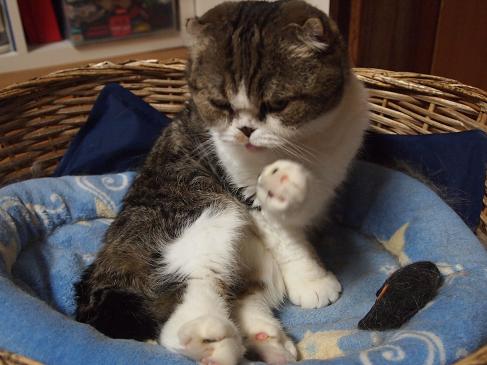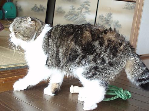 突然変異っていうか、骨の形成異常なので、体への負担はリスクが高い。しっぽが短い子は異常が出やすいらしい。でも、大なり小なりのリスクはみんにゃが持たされている。折れ耳でない子にも確率は低くなるが異常は出る。人間が操作して作り出してきたスコ、そしてマンチカン。苦しむのは猫達。