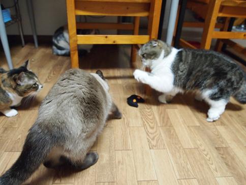 みんにゃで取り合いしている中に、てんちゃんが入ってきました。
