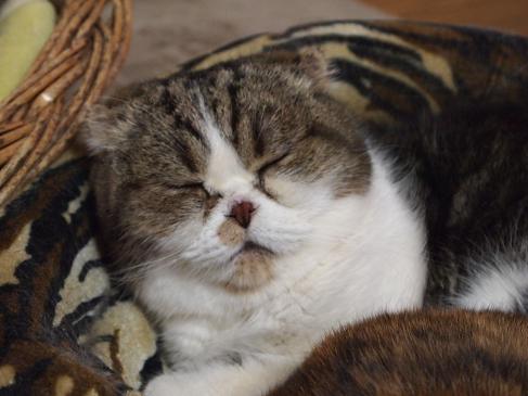 スコは突然変異のスージーという耳が折れた猫が始まり。 突然変異なので、1回の出産で20%~30%くらいしか耳折れの子は生まれないらしい。4にゃん産まれても1にゃんが耳折れで産まれるか産まれないかというくらいの確率。