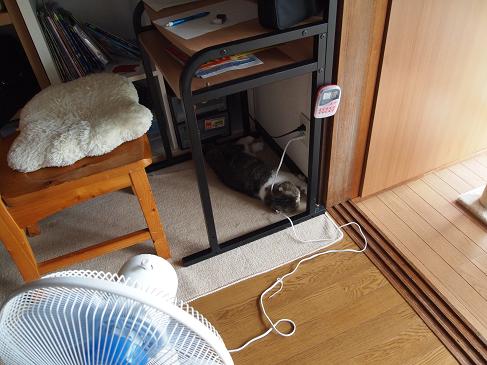 寝てますね・・・そこは、風が通りませんが・・・?顔だけ涼しい?